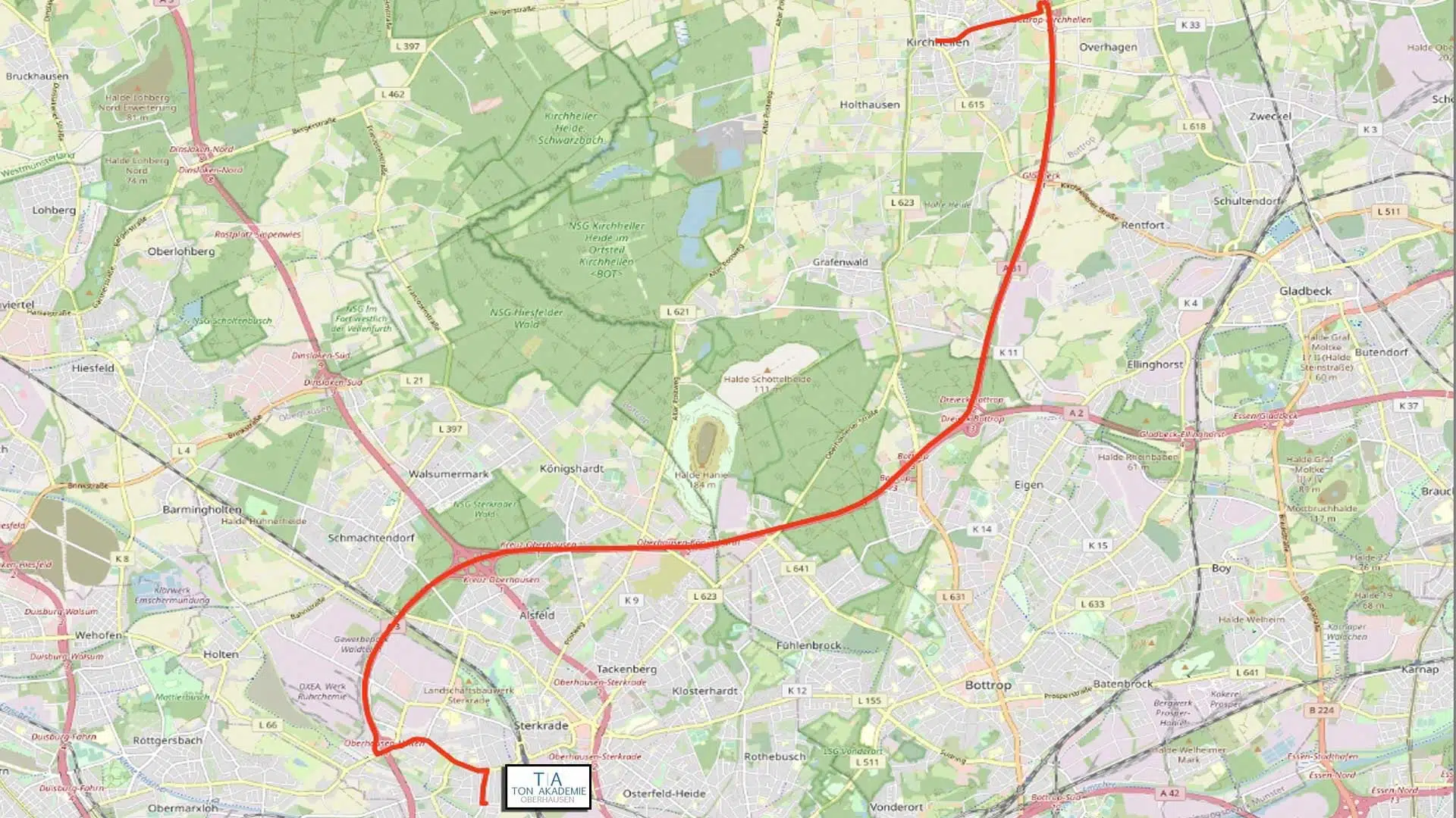Anfahrt zur TON Akademie Oberhausen von Kirchhellen